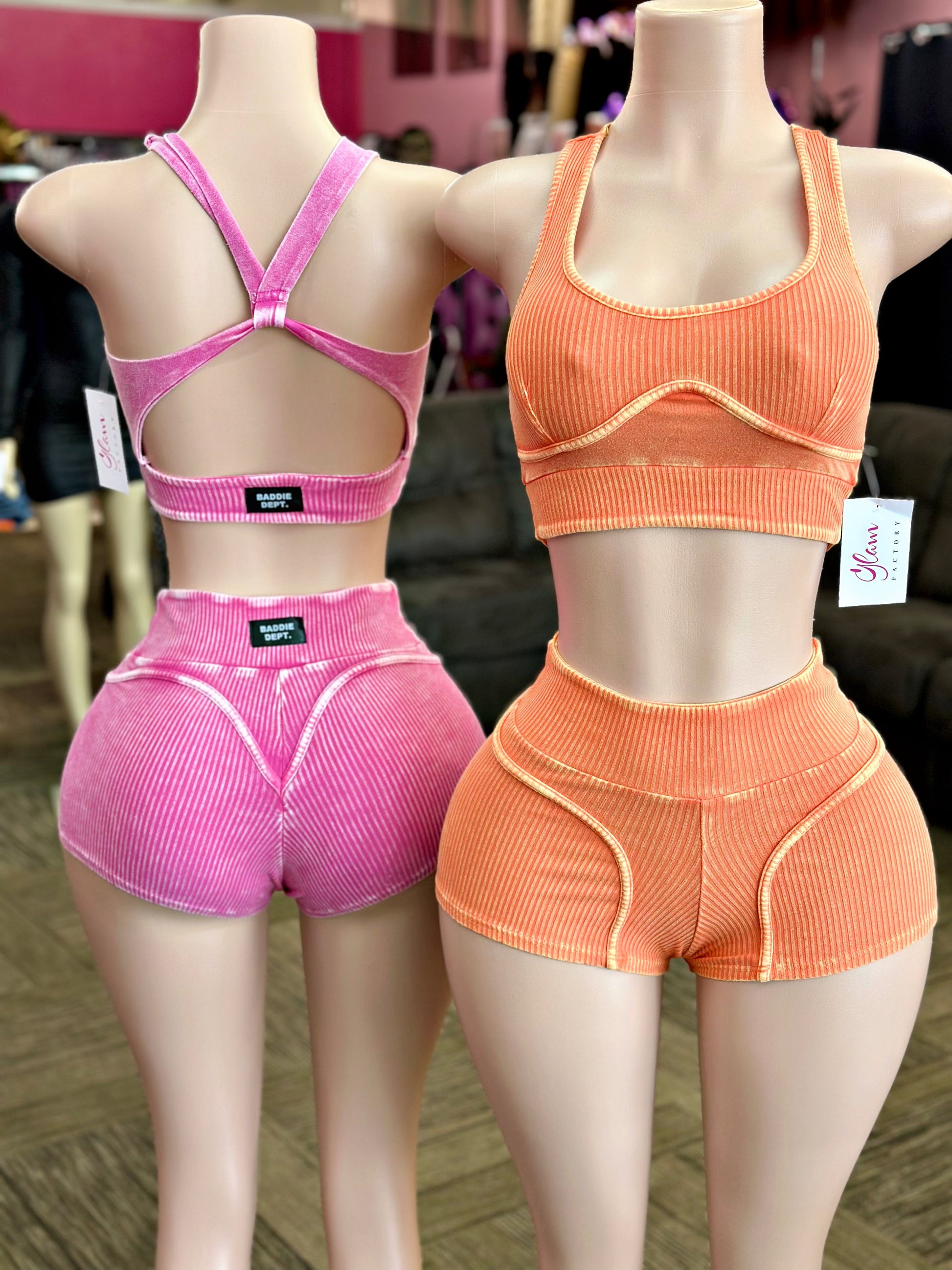 Mineral wash black label bralette and mini short set. Very stretchy material.