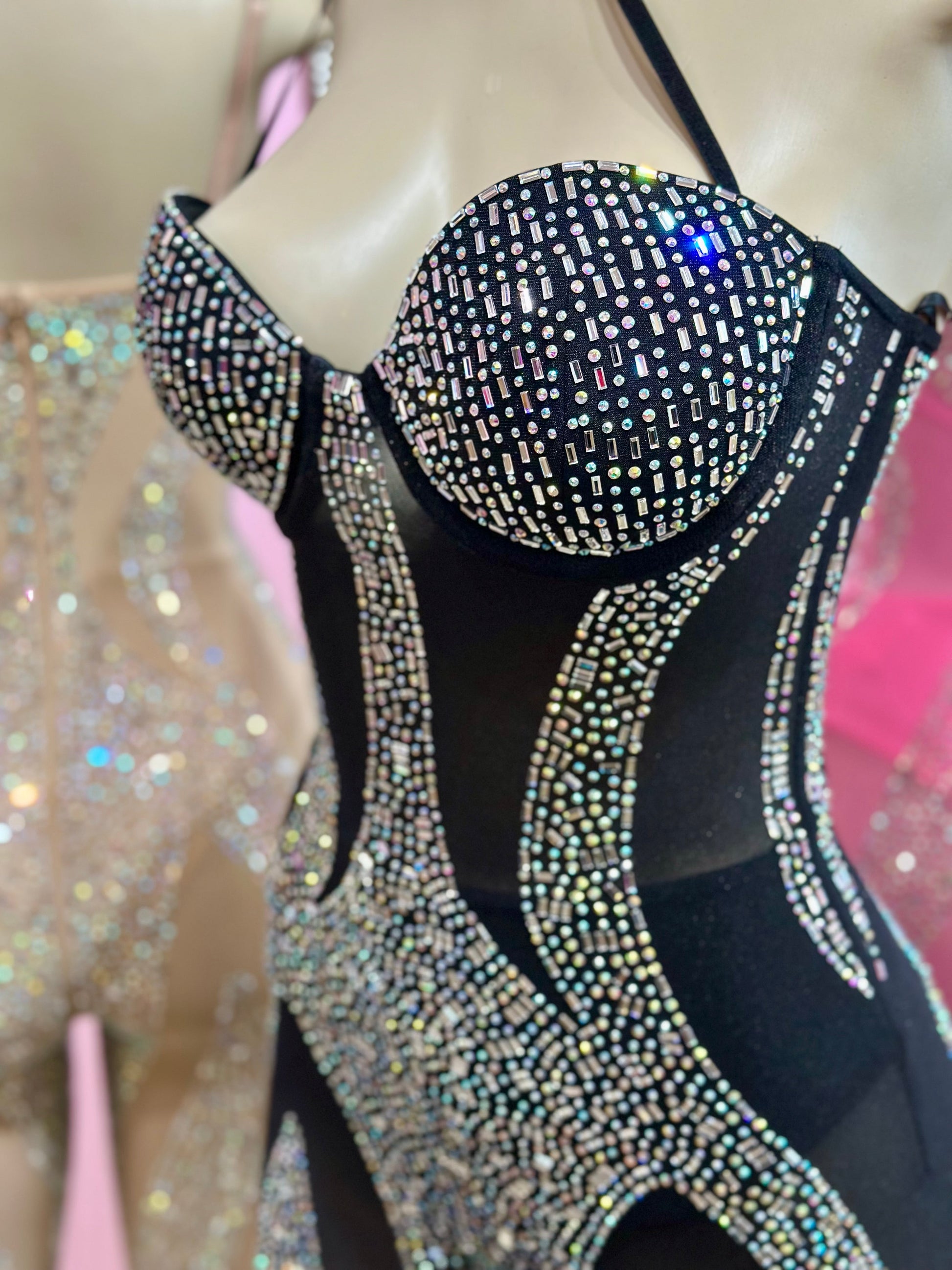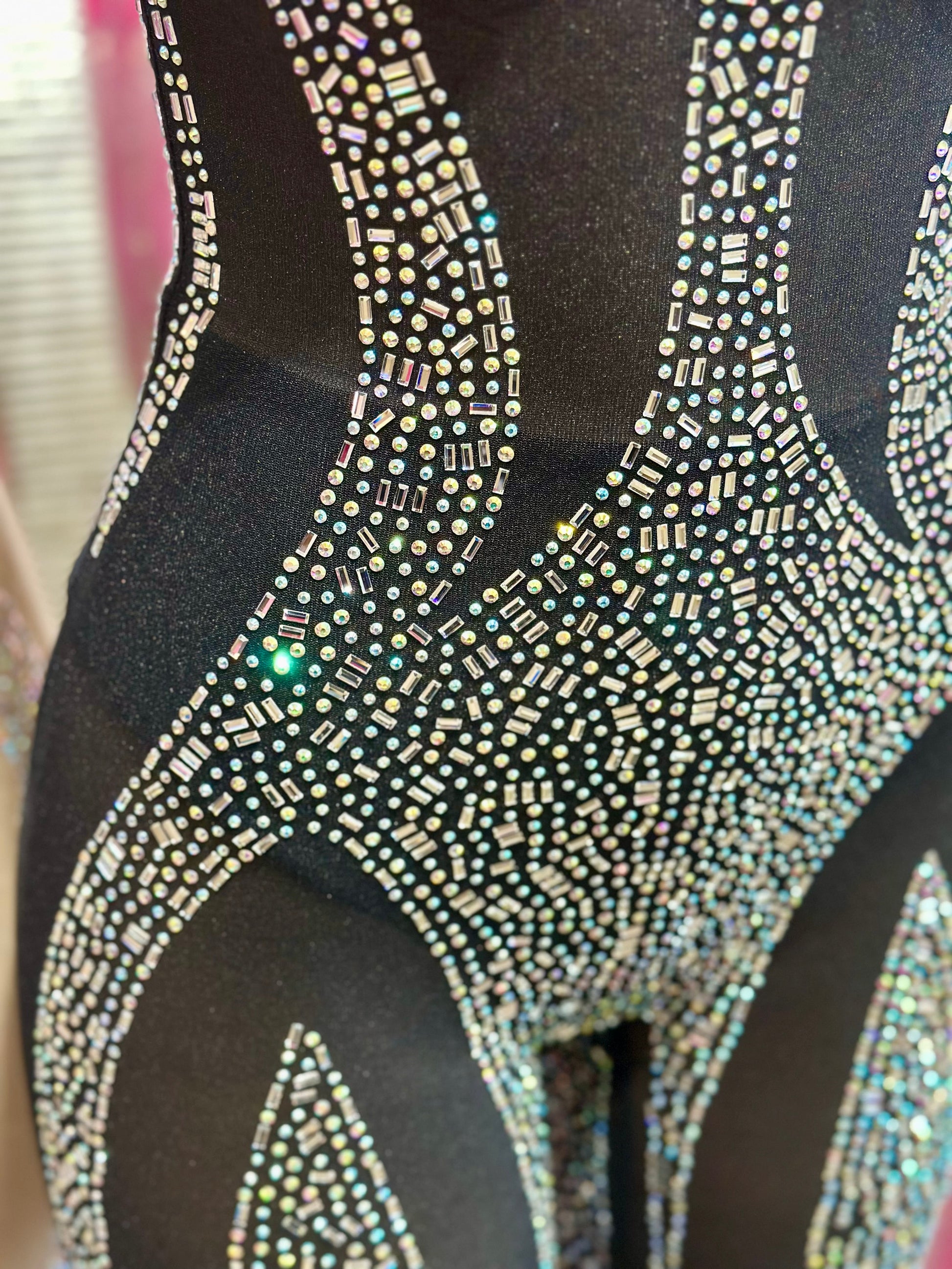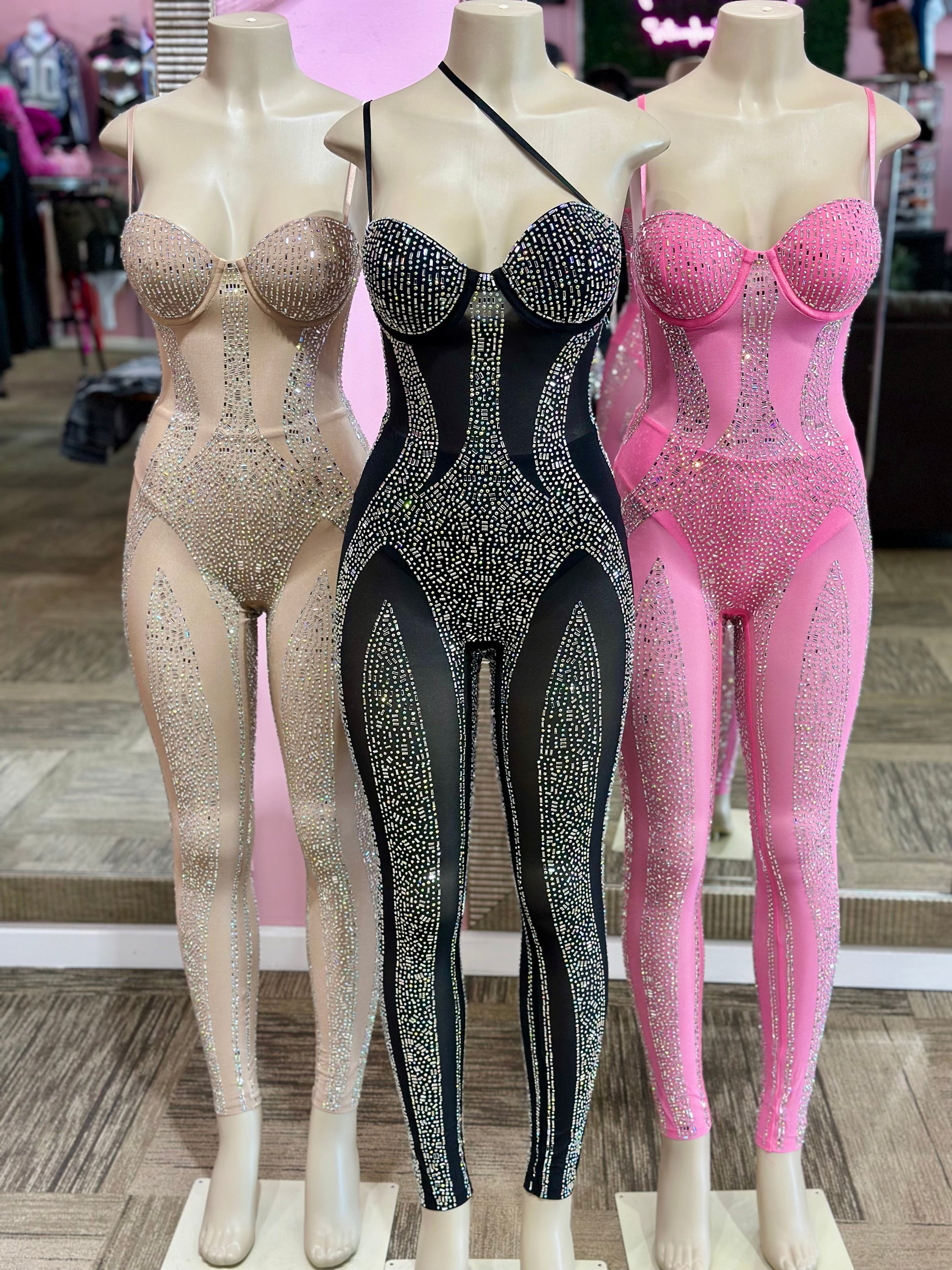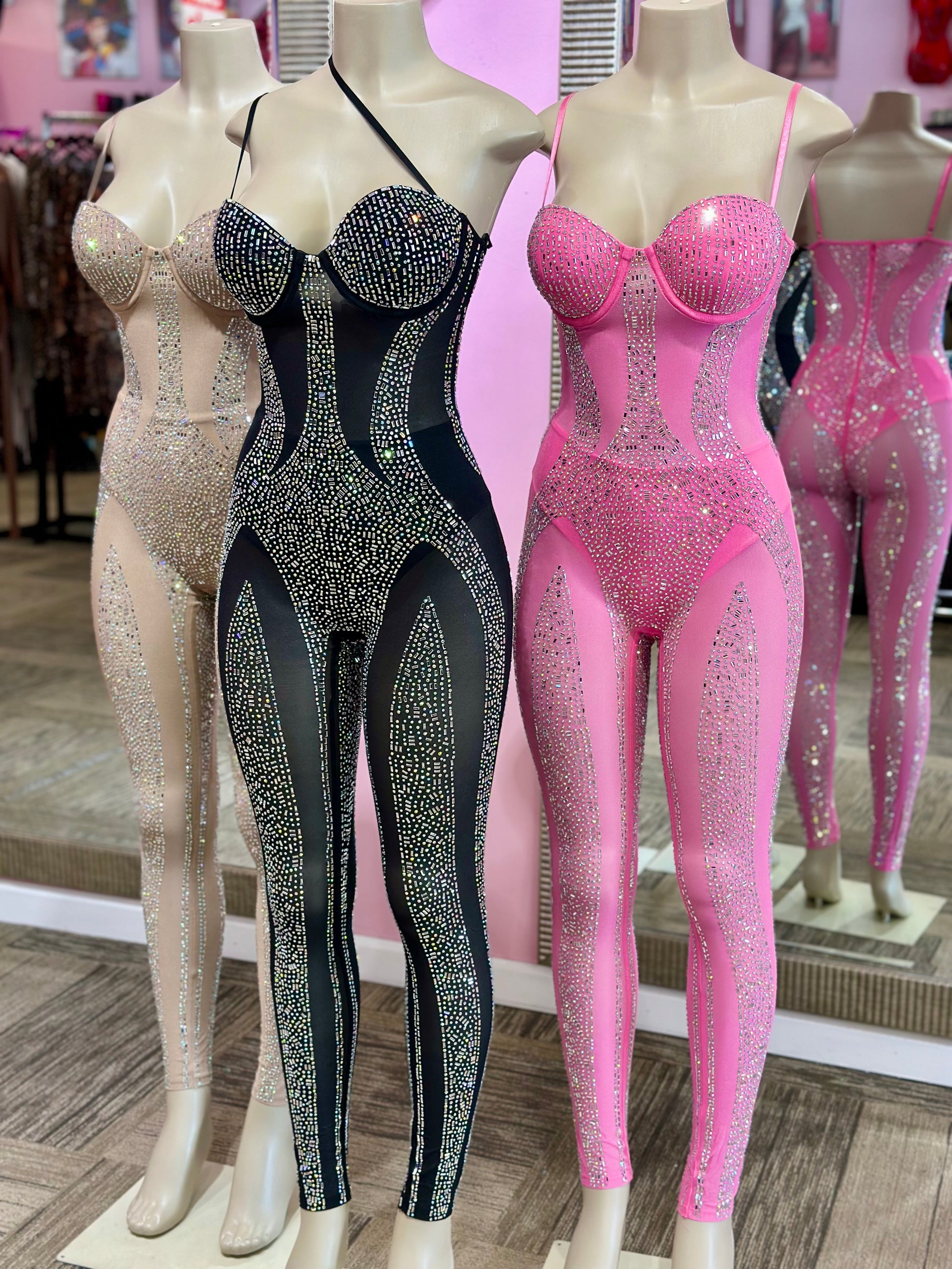 - RHINESTONE MESH SLEEVELESS JUMPSUIT