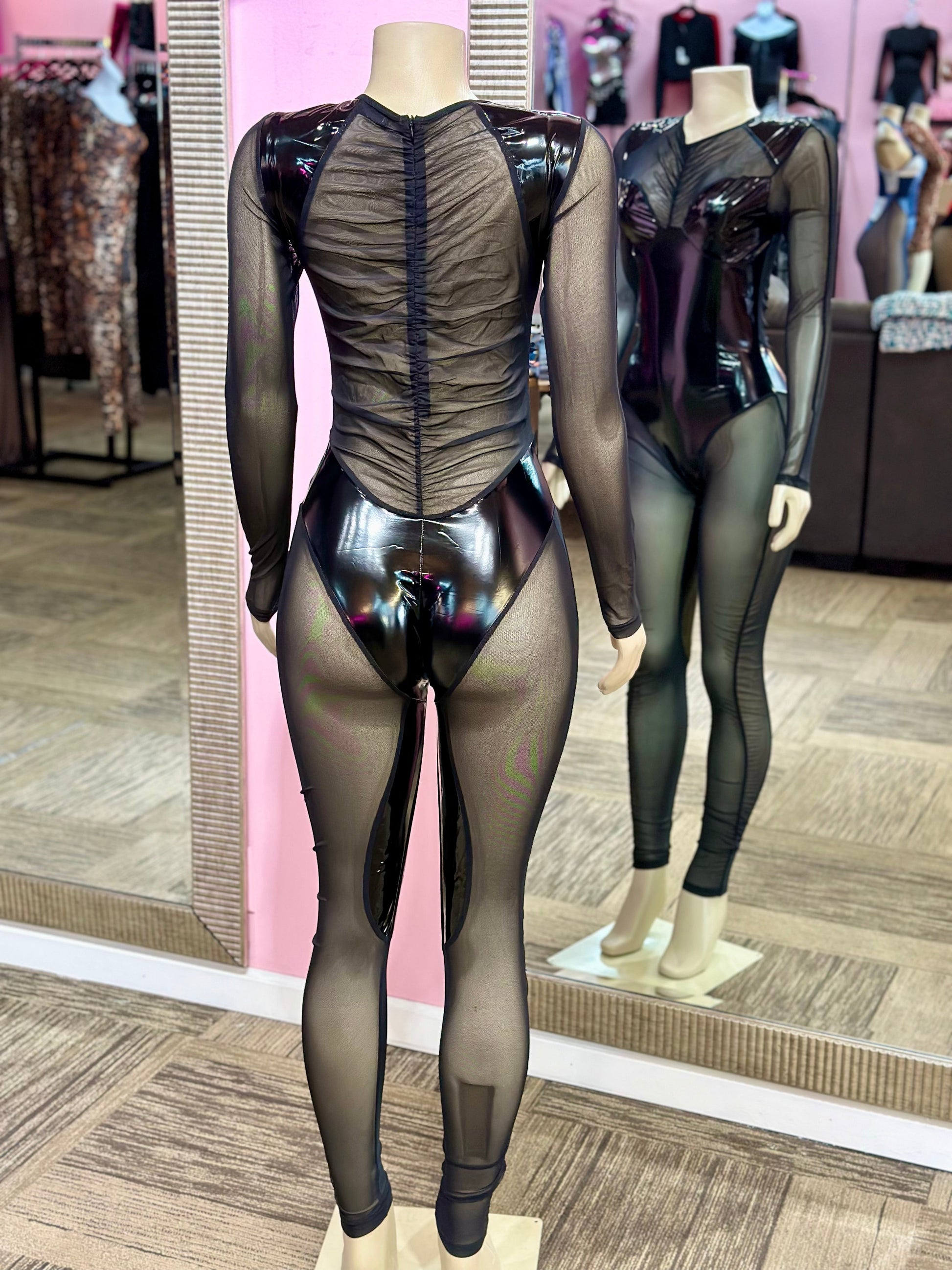 Long sleeve mesh jumpsuit. Stretchy material. Fits true to size