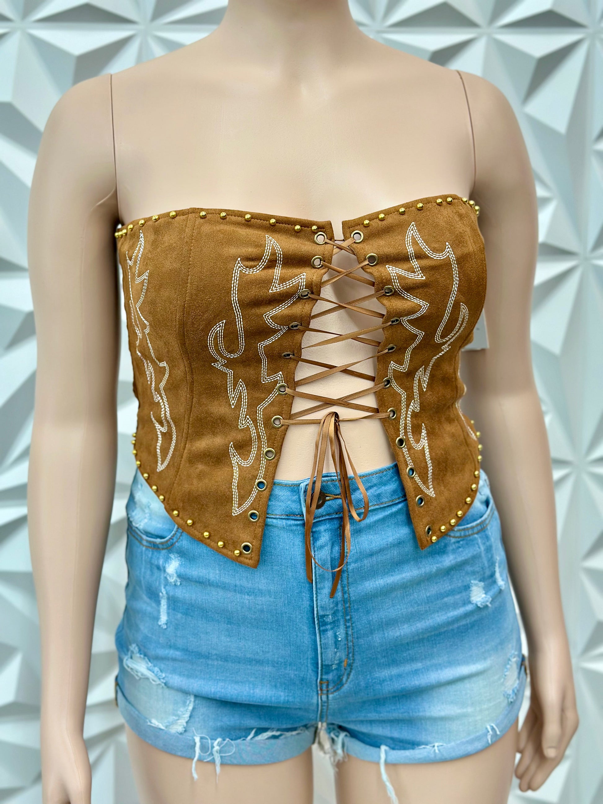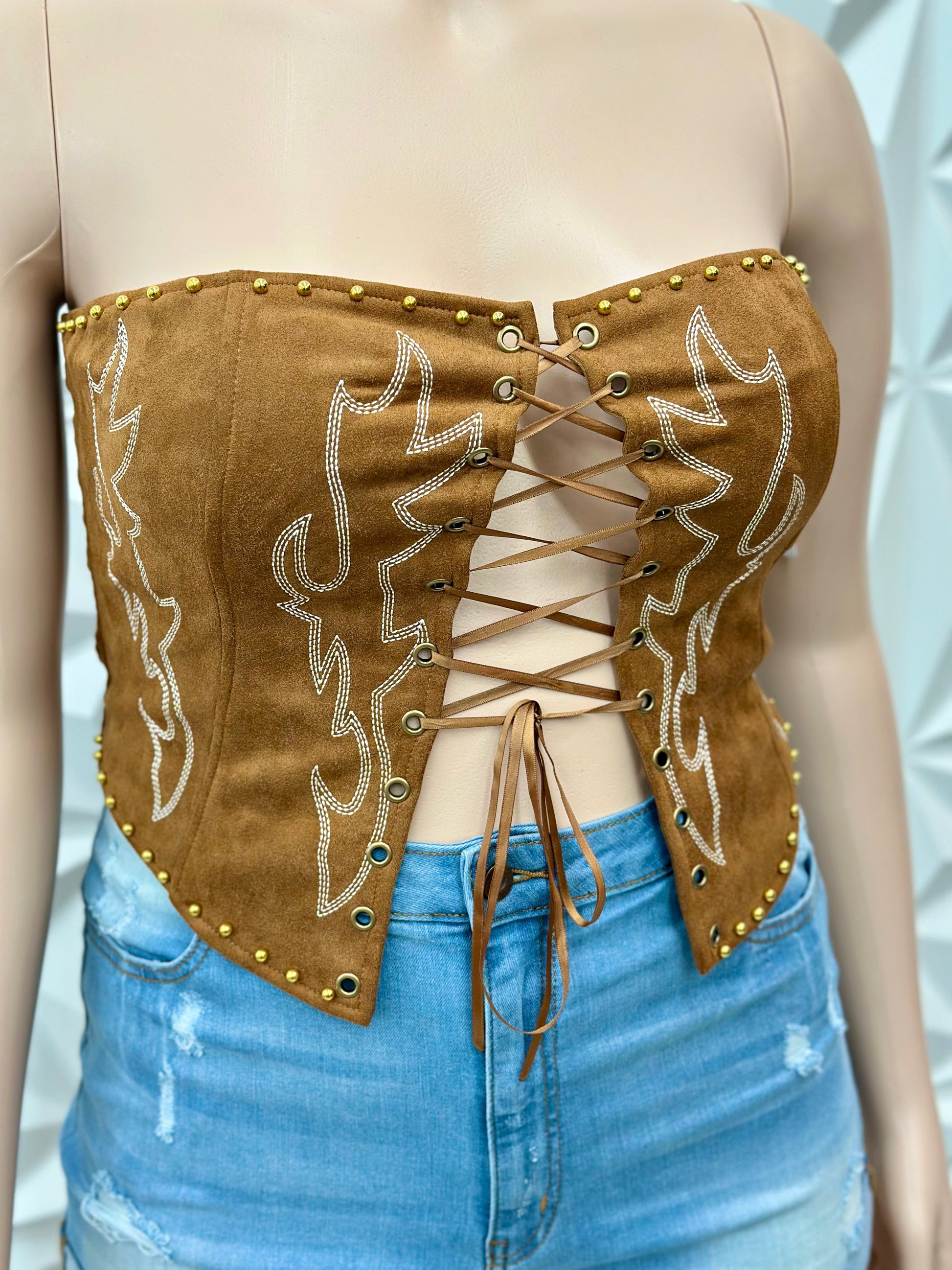 Plus Size Vegan Embroidered Western Corset Top