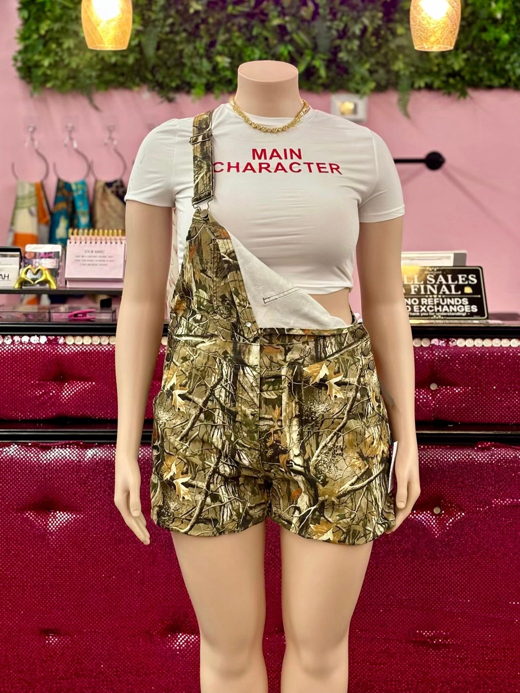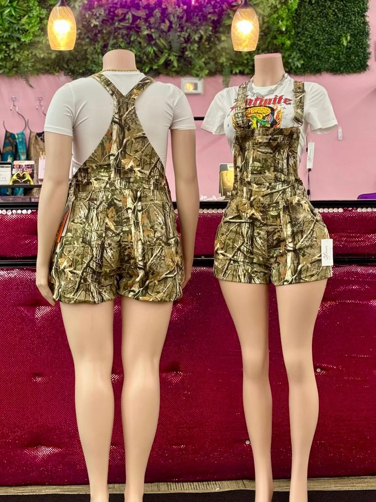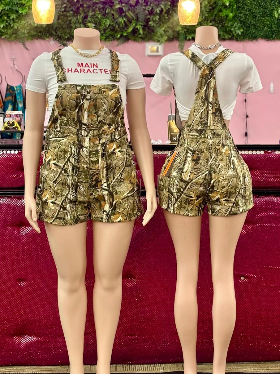 Camouflage print short overalls. Stretchy material. Fits true to size