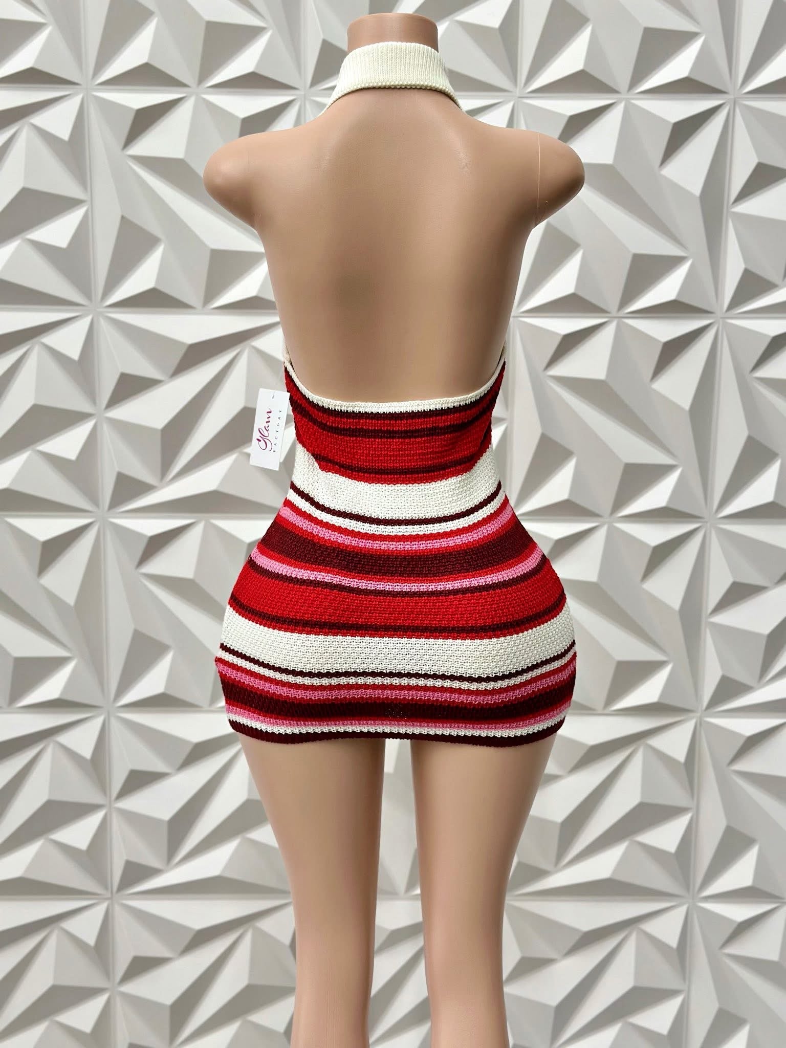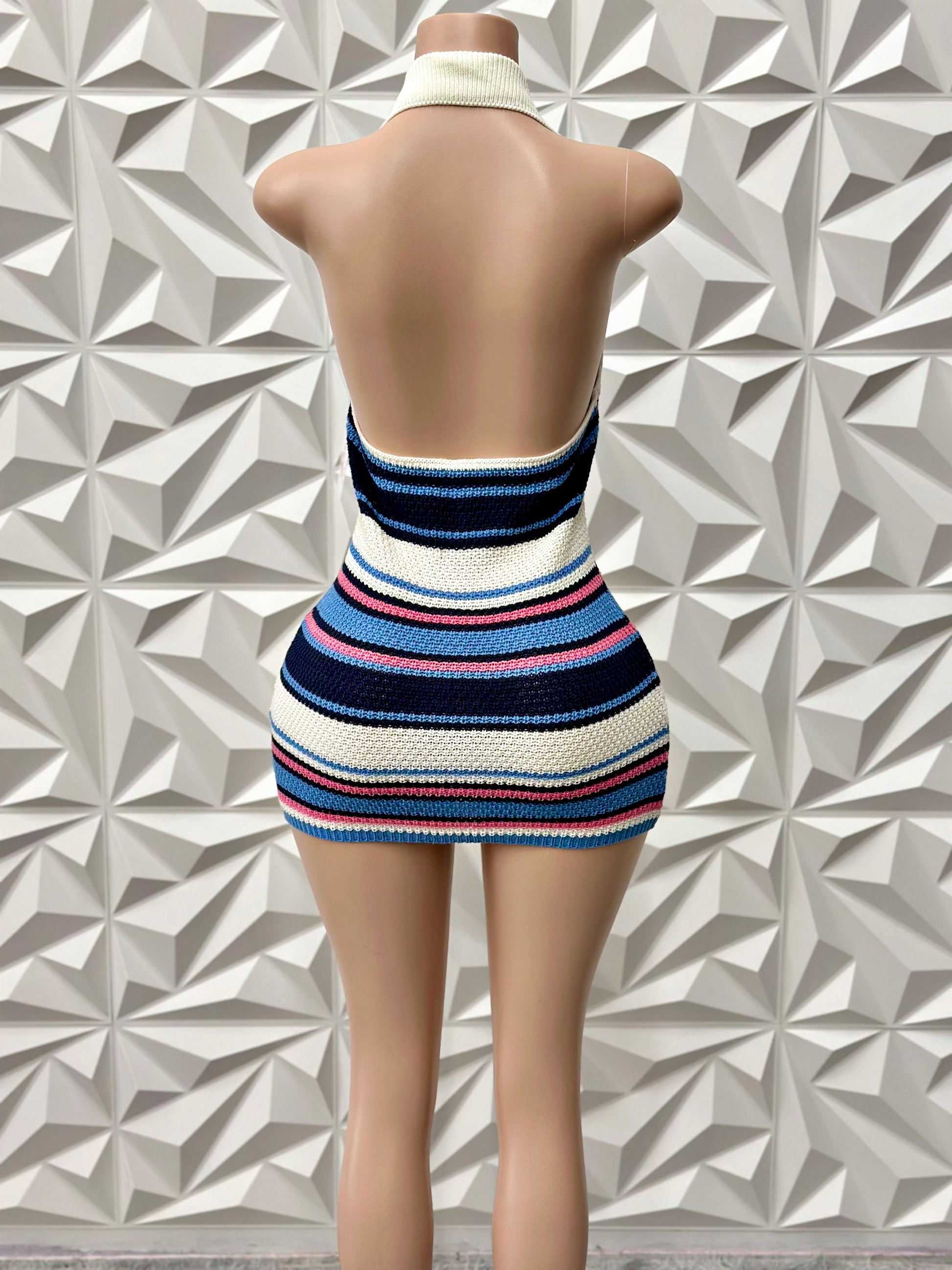 Knit striped mini dress, V neck collared bodycon dress with figure-hugging silhouette, date night bodycon mini dress, collared mini sweater dress.