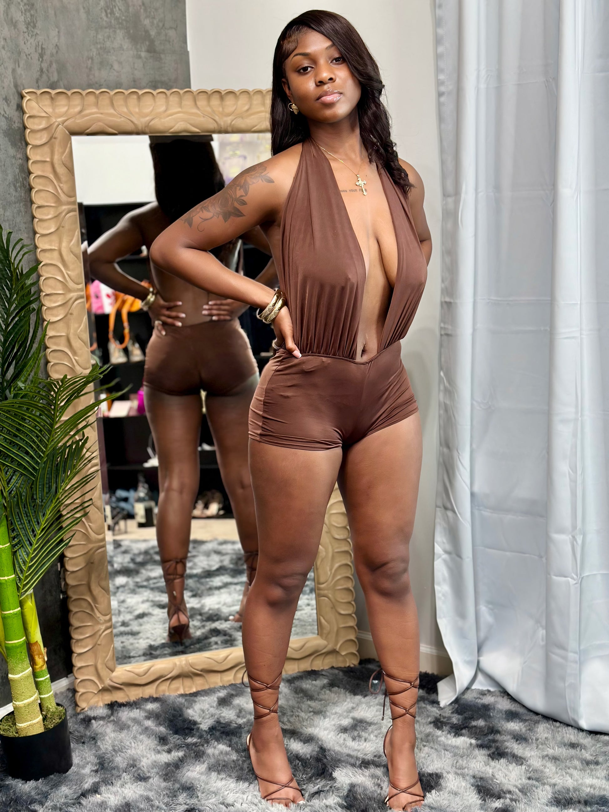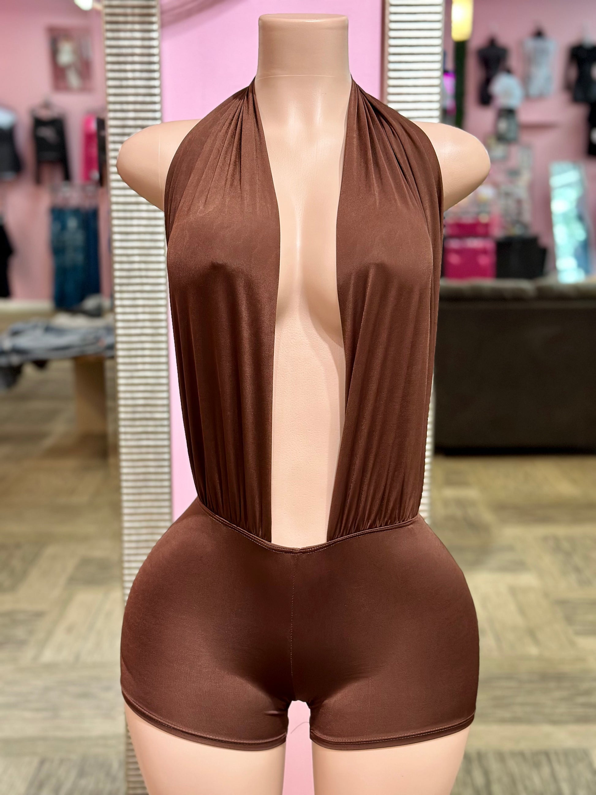 Halter top shorts romper. Stretchy material. Fits true to size